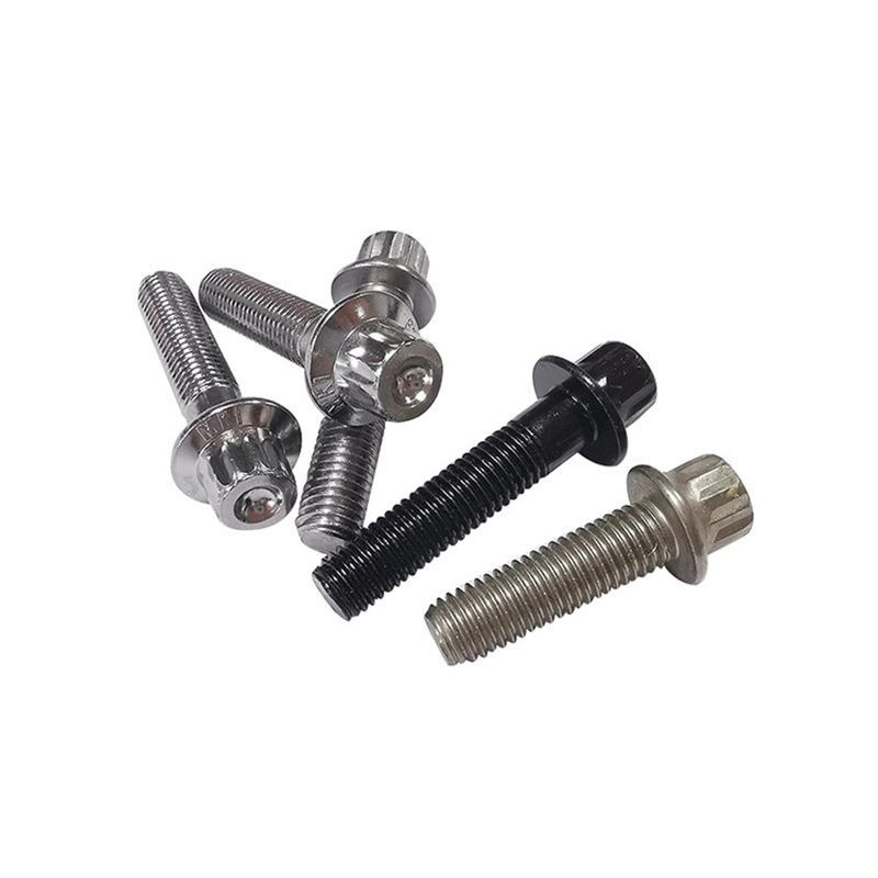 Disse 12 -punkts hovedflangeskruer kan reducere vægten. Den smalere del under tråden kan reducere materialetab uden at ofre styrke. Det er meget velegnet til vægtfølsomme applikationer såsom flypaneler eller racerbiler. Flanger kan stadig bruges som indbyggede pakninger.