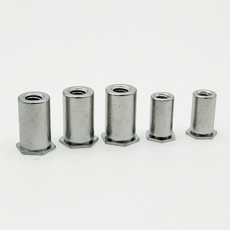 Det blinde hul fladhoved hexagon nitteret nødde-farvet stål har nogle vigtige fordele. Først, når den først er installeret, forbliver det sat, ingen løsning over tid. Det flade hoved sidder flush, så der er ingen bulge, der stikker ud. Det håndterer vibrationer virkelig godt, hvilket er vigtigt for dele, der bevæger sig rundt. Og det er stærkt, holder op med at blive trukket ud eller snoet af.