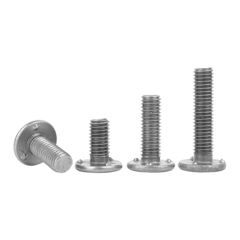 Svejsepunkterne på bundfremspringende svejseskruer kan bruges til at forsvejse boltene på emnet, hvilket letter efterfølgende montageoperationer. Skruen har regelmæssige og gennemgående ensartede gevind, som kan matches mednødderog andre komponenter. De kan tilpasses materialer af forskellig tykkelse og opfylder forskellige monteringskrav.