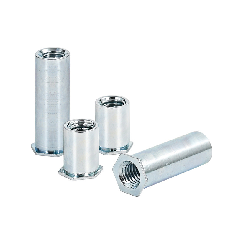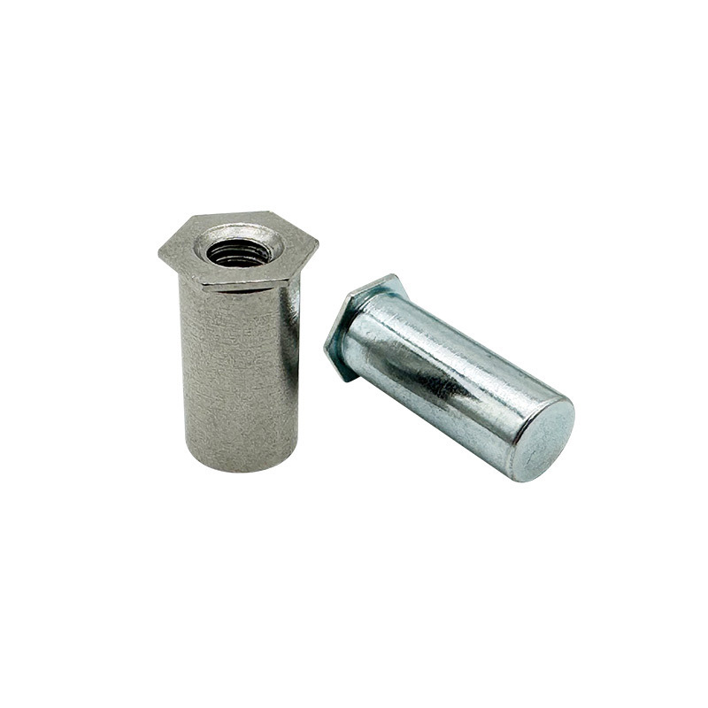 Carbon Steel Hexagon Rivet Nut-søjle Få deres vigtigste mekaniske træk fra medium-carbon stål, ofte ligner ISO 898 klasse 8 eller SAE J429 grad 5. Dette stål har høj trækstyrke (normalt over 800 MPa) og god udbyttestyrke, så det kan håndtere stærke klemme kræfter, vibration og bevægelige belastninger uden at bryde.
