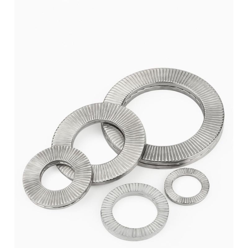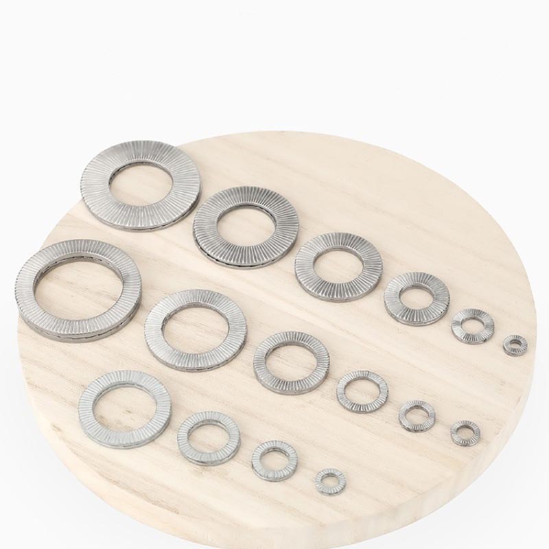 Dette to-lags design holder forbindelsen stram uden at have brug for lim, lock-tight-kemikalier eller andre ekstra ting. I modsætning til almindelige flade skiver, lader det ikke bolte løsne over tid. Det betyder, at du ikke behøver at kontrollere eller ordne dem så ofte, og du kan genbruge skiven i mange tilfælde. DeDobbeltlags selvlåseskiverFungerer godt for biler, maskiner, fly og andre steder, hvor ting vibrerer meget eller har brug for at forblive sikre på lang sigt.