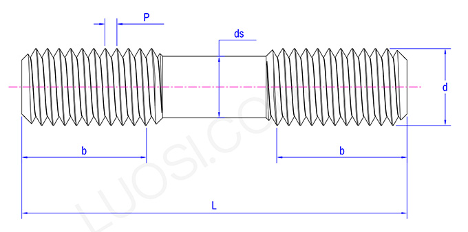 Den udvidede lige længde dobbelte ende stud som helhed er en slank metalstang med lige store længde tråde i begge ender, og disse tråde løber gennem begge ender. Den midterste del er normalt en glat og almindelig stang. Længden kan tilpasses i henhold til faktiske behov.