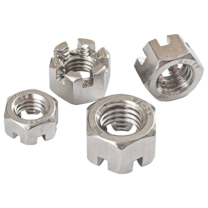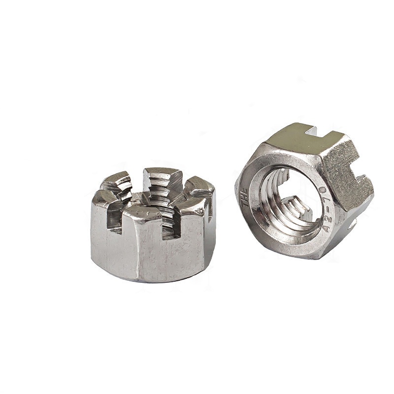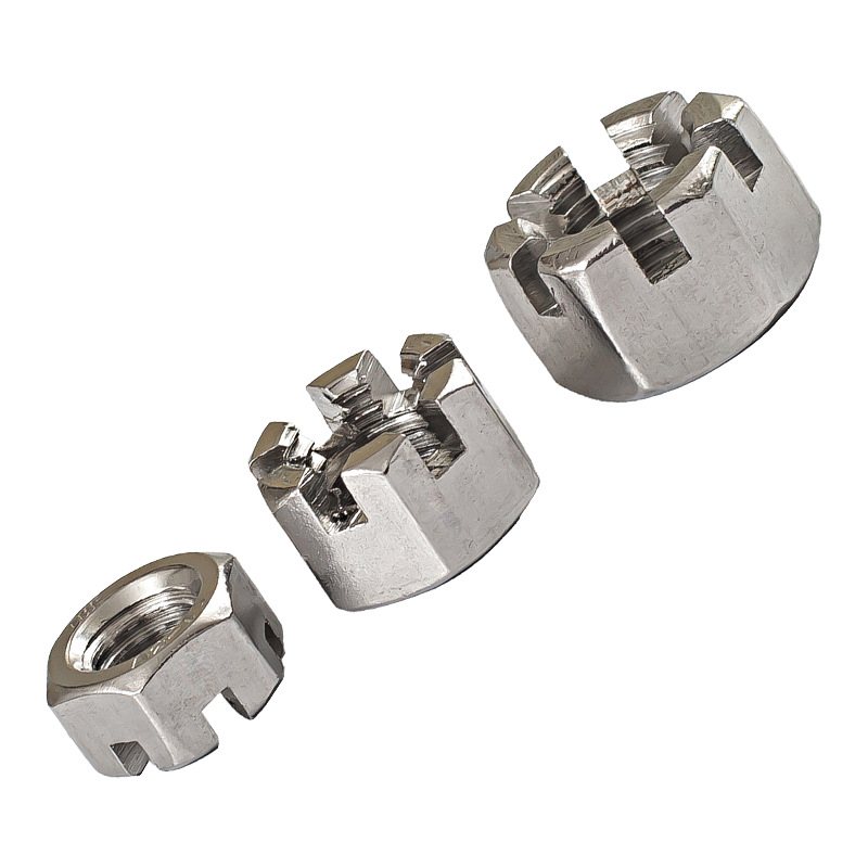For endnu bedre beskyttelse mod rust og korrosion er der slidsede fejlsikker krone møtrik med slots med en række målrettede overfladebehandlinger: hot-dip galvanisering tilføjer et tykkere zinklag til robust korrosionsbeskyttelse. Mens cadmiumbelægning er vidt brugt i rumfart, er dens anvendelse begrænset i visse scenarier eller under visse standarder. Specielle belægninger såsom Geomet og Dacromet er også tilgængelige, der passer til korrosionsbeskyttelsesbehovene i forskellige miljøer. Gennem disse behandlinger kan de opretholde god stand i en længere periode og er mindre tilbøjelige til at blive beskadiget af korrosion i scenarier, hvor korrosion er et fremtrædende problem (såsom fugtige og salt marine miljøer og fabriksområder med hyppig kontakt med kemikalier). For rustfrit stål slidsede krone nødder er passivering standard. Denne proces fjerner fri jern og danner et beskyttende oxidlag, hvilket får mest muligt ud af deres naturlige evne til at modstå korrosion.