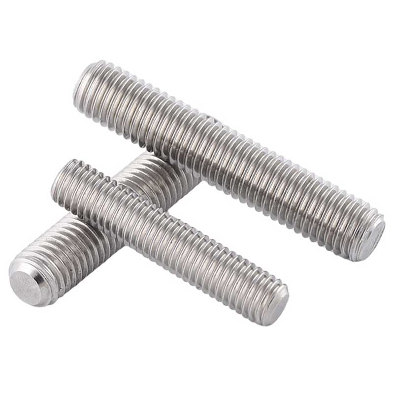 Fuldt gevindtrådede studs med ovalt punkt har i det væsentlige tråde, der løber gennem hele studen, med den ene ende gradvist indsnævret til et ovalt hoved. Det er som en guide, der styrer stifterne glat ind i hullerne under installationen. Dette betyder, at du er mindre tilbøjelig til at skade trådene på delene, især når du fungerer manuelt eller i smalle rum. Brug en standardmøtrik i den anden ende.