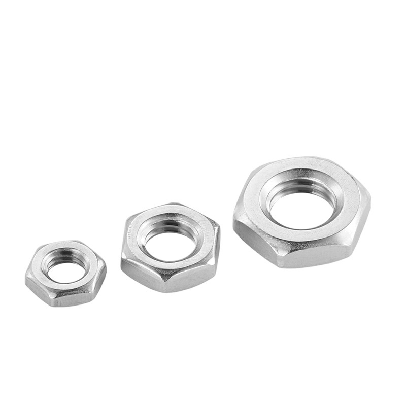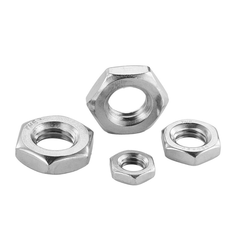 Hexagon Ekstra flade nødder med fin tonehøjde bruges til mekaniske, elektroniske eller bilkomponenter med strenge krav til plads og præcision.