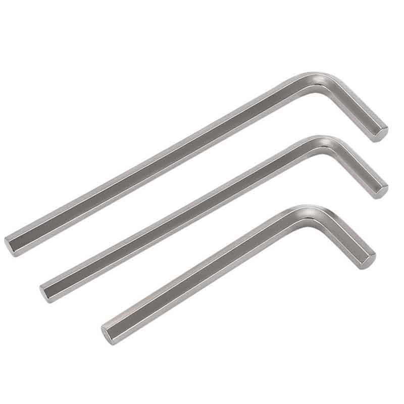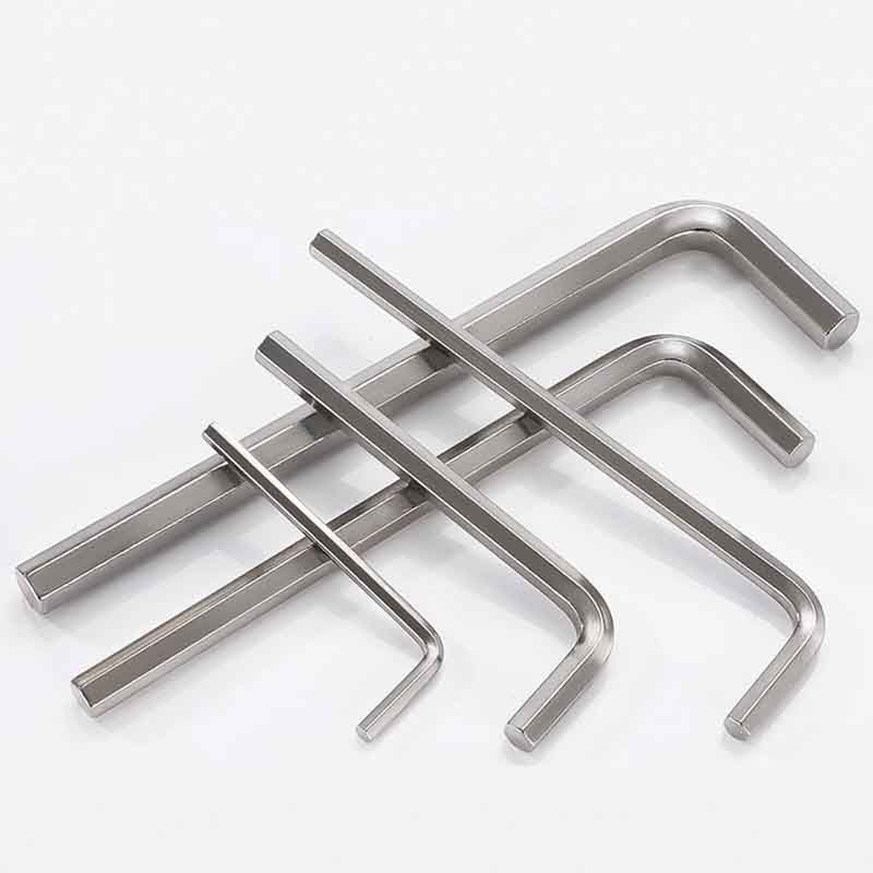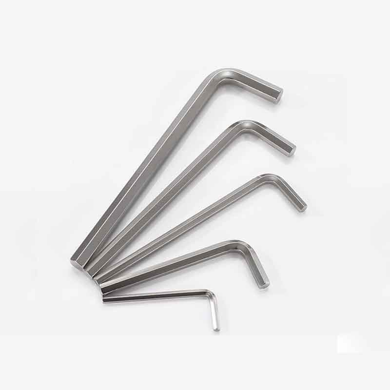 Hexagon-nøgler af god kvalitet er lavet af stærkt legeringsværktøjsstål, normalt krom vanadium (CR-V) eller krommolybdæn (CR-Mo). De varmebehandler disse materialer for at få en god balance mellem hårdhed og styrke. Den hexagonale kant og guide tip har høj hårdhed (om HRC 50-60) og er ikke let at bære, og hele værktøjet er hårdt nok til at modstå tilstrækkeligt drejningsmoment uden at vri eller bryde. Det vil ikke let blive beskadiget under barske miljøforhold og hyppig brug og kan bruges i lang tid og er relativt holdbar.