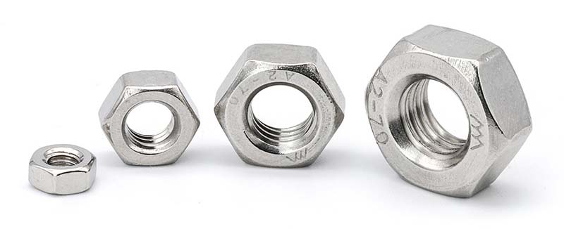 Hexagon tynde nødder med metrisk fine tonehøjde trådBrug fin tonehøjde, ofte anvendte trådspecifikationer er M6X0.75 eller M8X1.0. Sammenlignet med grov tonehøjde er dens påvirkningsmodstand stærkere. Materiale er rustfrit stål eller messing.