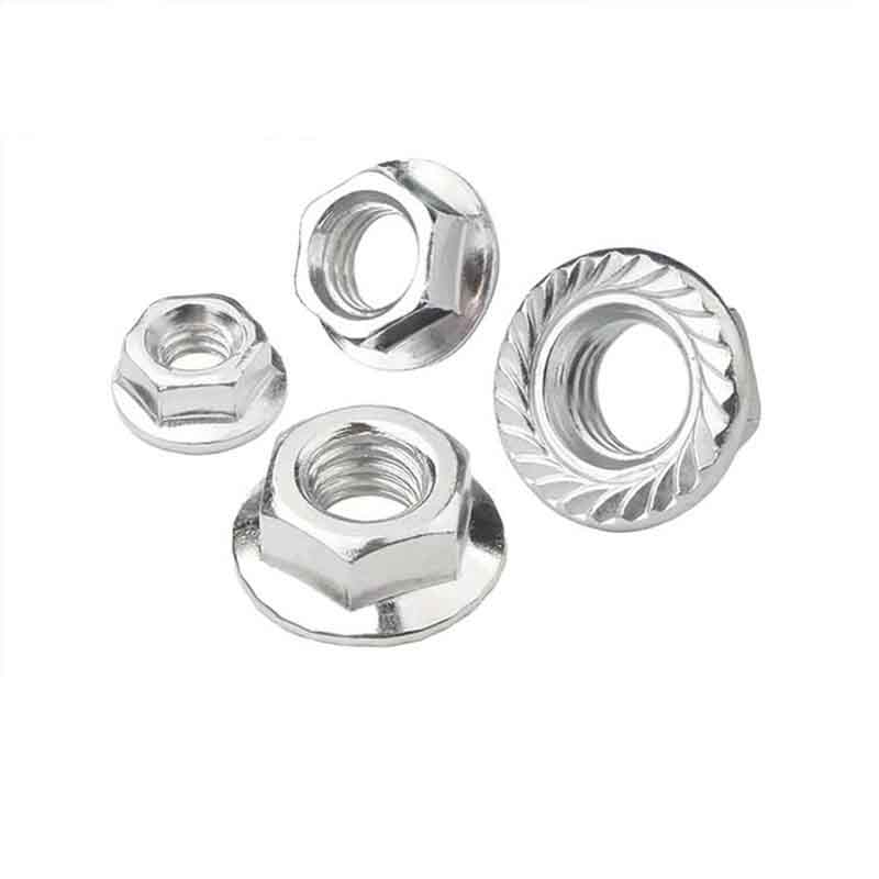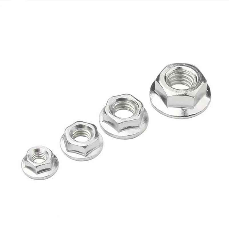 Højeffektive sekskantmøtrikker med flange følger gængse internationale standarder, der angiver deres nøjagtige størrelser og mekaniske egenskaber. De vigtigste standarder omfatter ISO 4161 (plejede at være DIN 6926) og ASME B18.2.2. Størrelser dækker ting som hex-bredden over flade (AF), totalhøjde, flangediameter og gevindstørrelse/-stigning (som M12x1,75). Flangediameteren er større end sekskantdelen, hvorfor den hjælper med at sprede belastninger. De kommer i almindelige metriske og imperiale gevindstørrelser, normalt fra M5/M6 op til M36, eller 1/4" op til 1,5", så de fungerer til forskellige tekniske behov.