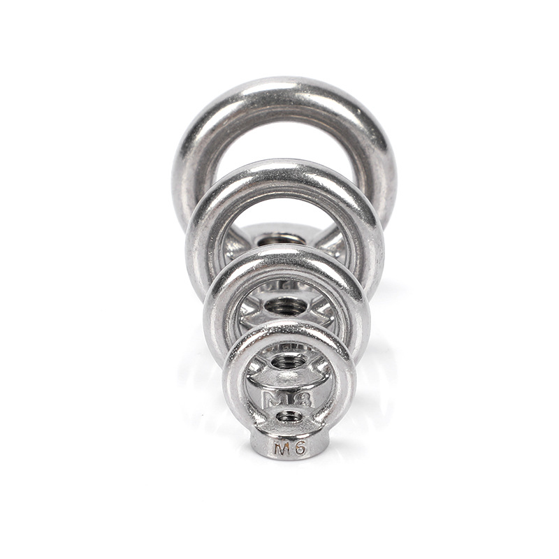 Vi bruger hovedsageligt højkvalitets kulstofstål og rustfrit stål (såsom 304/316) til at fremstille "industriel løftende øjenmøtrik". Carbon Steel har god generel styrke, mens rustfrit stål kan give fremragende korrosionsbestandighed i barske miljøer, hvilket sikrer produktets holdbarhed og langsigtede pålidelighed.