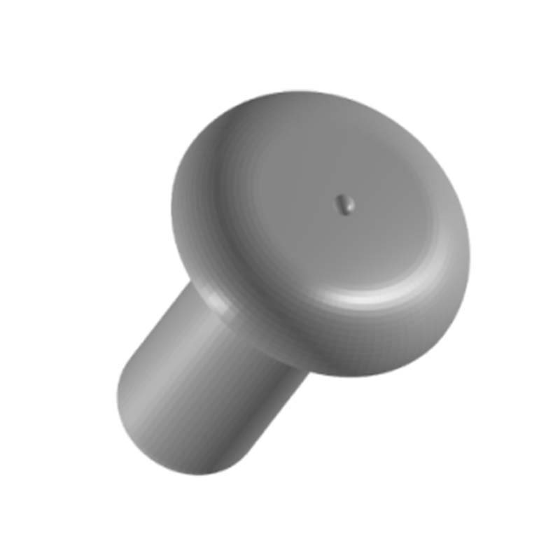 Toppen af grydehovedstiften er cirkulær og ligner en lavvandet kuppel. Efter svejsning vil den stikke lidt frem. Hvis der er behov for at efterlade plads under hovedet til placering af skiver eller dele, vil dette design være meget praktisk. På de fleste fabrikker er denne form for situation, hvor højden ikke er et problem, ret almindelig.