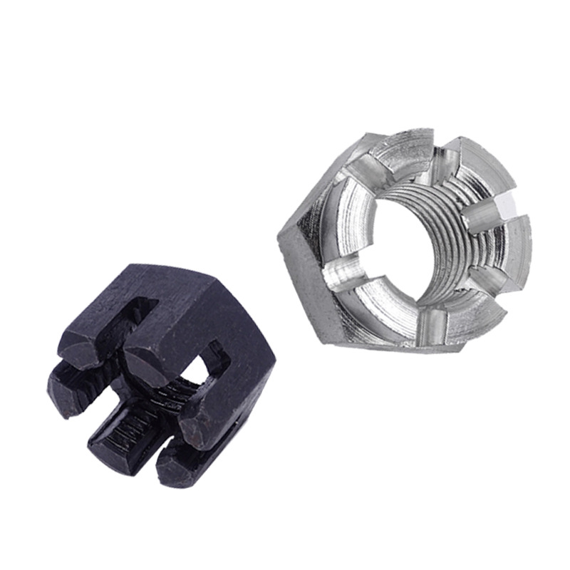 A: Vores positivt at låse krone møtrik med slot kommer i forskellige materialer - så de kan passe til forskellige miljøbehov og styrkebehov. Når vi vælger materialer, vælger vi normalt grad 8 stål og rustfrit stål (såsom SS304 eller SS316). Messing er også meget almindeligt brugt.