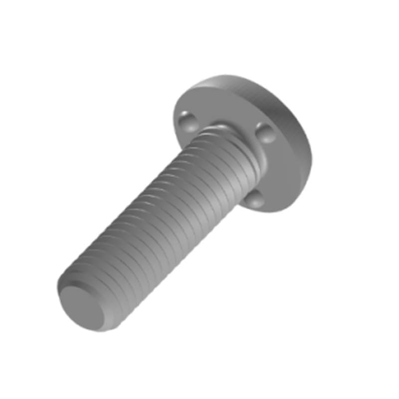 Denne svejseskrue har en flangeplade. Formen og størrelsen af flangepladen er omhyggeligt designet med kanter, der muligvis har en vis krumning eller specielle strukturer. Under svejsning kan den bedre klæbe til svejsningen og forbedre svejseeffekten. Gevindbehandlingsnøjagtigheden er høj, og den passer tæt til møtrikken, hvilket sikrer stramningseffekten efter installationen. Det overordnede strukturelle design gør det muligt for bolten effektivt at overføre kraften til svejsningen, når den er under belastning.