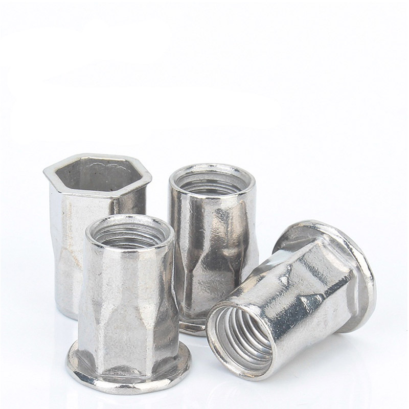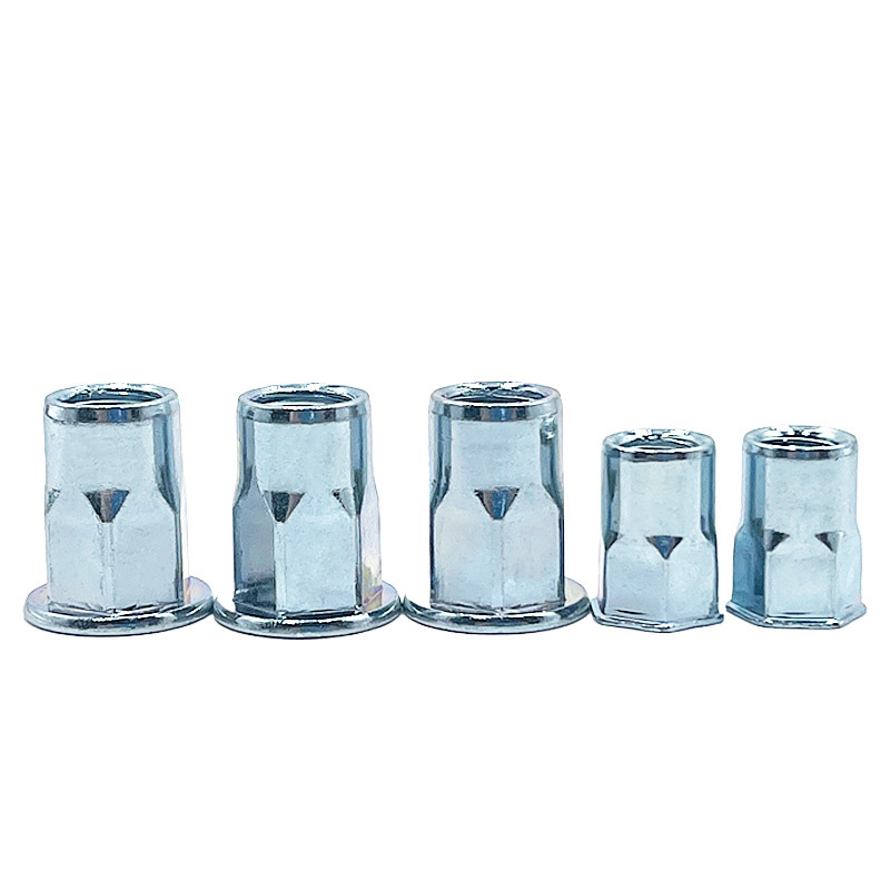 Secure Anchoring Hex Nivet Nuts er fremstillet af en række holdbare materialer for at imødekomme de forskellige anvendelsesbehov i forskellige industrier og projekter, herunder almindeligt kulstofstål, rustfrit stål (såsom de almindeligt anvendte kvaliteter 304 og 316), letvægtsaluminium og ledende kobber. Valget af det rigtige materiale til nødder afhænger hovedsageligt af praktiske faktorer som det styrkeniveau, som fastgørelseselementet skal have, dets evne til at modstå korrosion i forskellige indstillinger og de specifikke miljøforhold, som fastgørelseselementet vil blive udsat for under dets brug.