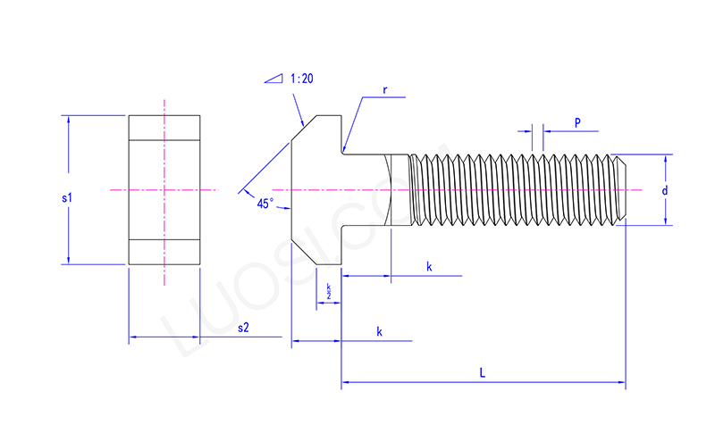 Square Neck T -bolte er meget genkendelige. Set fra siden, er den del, hvor hovedet forbinder til skruen, det vil sige nakken, en almindelig firkant, pæn og firkant. Desuden er længden af nakken normalt ikke for lang og er generelt omtrent den samme tykkelse som den komponent, den er forbundet til. Skruedelen er en cylindrisk metalstang, og dens tykkelse varierer afhængigt af boltens specifikationer. Skrueens overflade er indgraveret med tråde, der er ens i form som de almindelige bolttråde, vi ser, i en spiralform, og bruges til at stramme møtrikken.