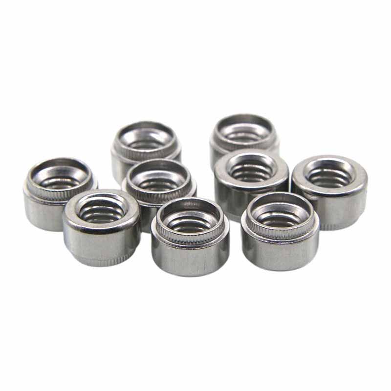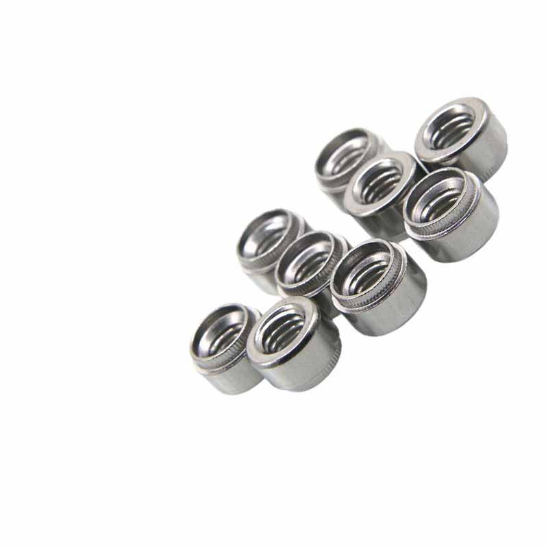 Denne selvklædte rustfri selvklyngende runde nittebush kommer i standardtrådstørrelser. For metrisk har du M3, M4, M5, M6, M8, M10. Imperialstørrelser inkluderer ting som #6-32, #8-32, #10-24, 1/4 "-20, 5/16" -18.